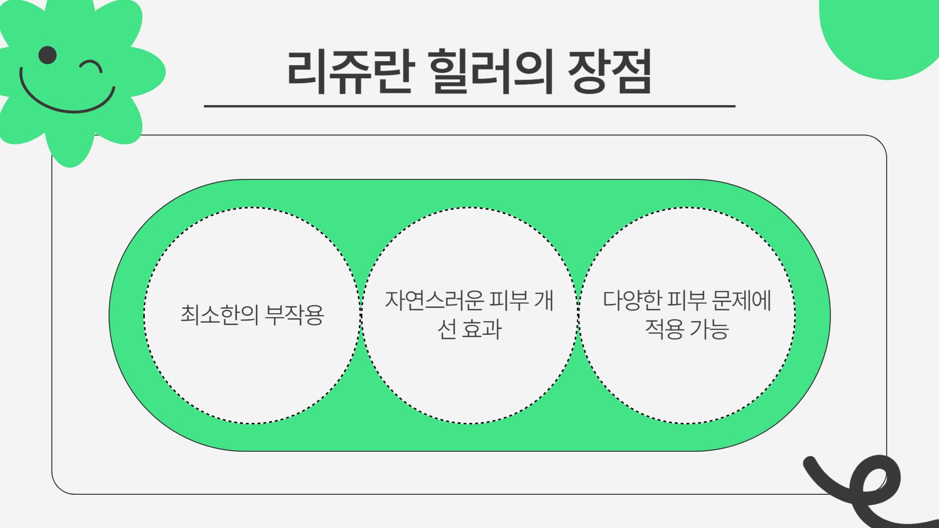 - 개인의 피부 상태 및 재생 능력: 피부 노화 정도, 피부 두께, 전반적인 건강 상태 및 피부 자체의 재생 능력에 따라 효과 발현 속도와 유지 기간에 차이가 발생합니다.