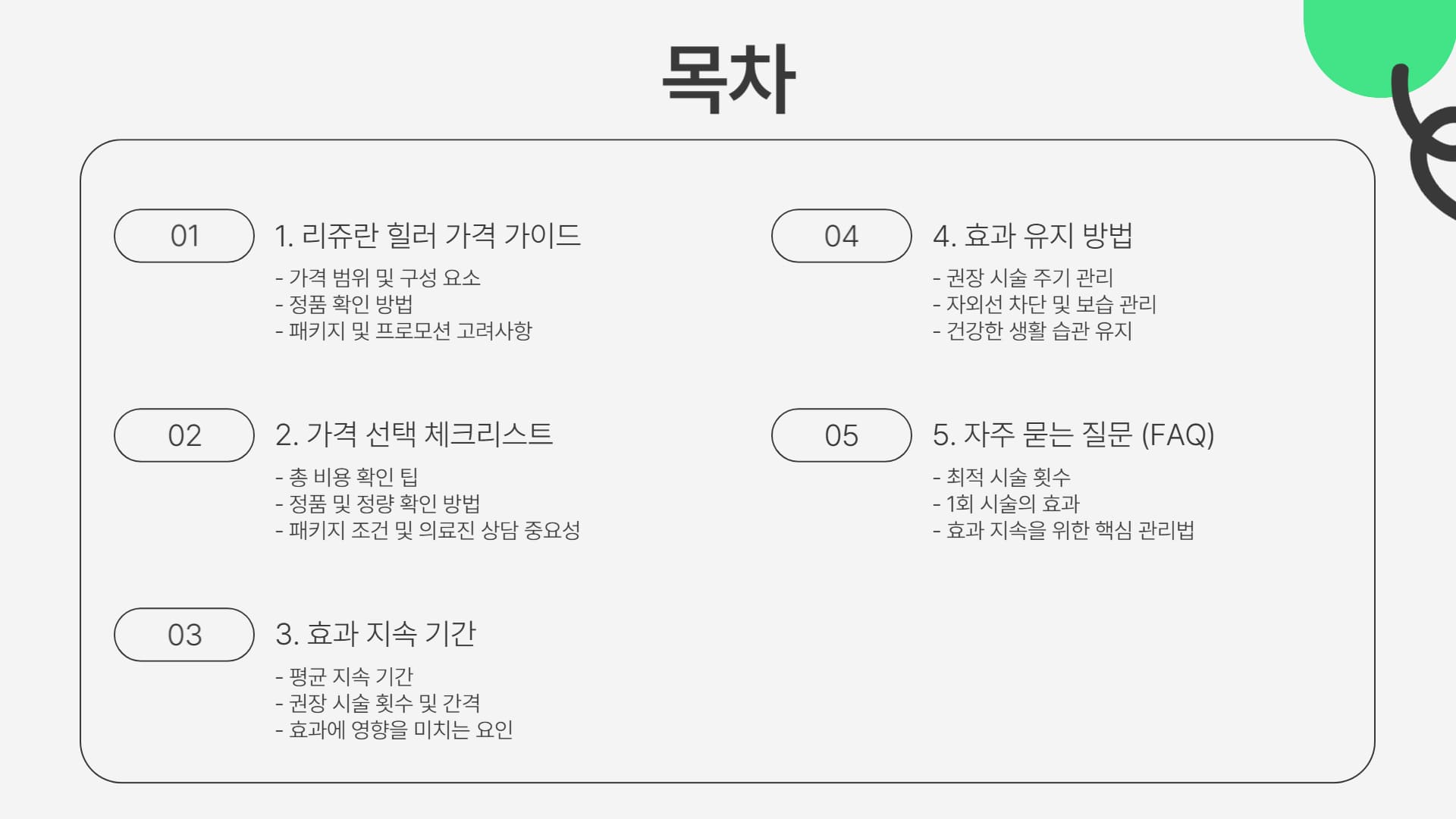 리쥬란 힐러 가격 지속 기간 중 비용적인 측면을 먼저 살펴보겠습니다. 아래 표는 핵심 요약을 담고 있으며, 이어서 합리적인 비용 판단을 위한 실질적인 체크리스트와 팁을 제공합니다.