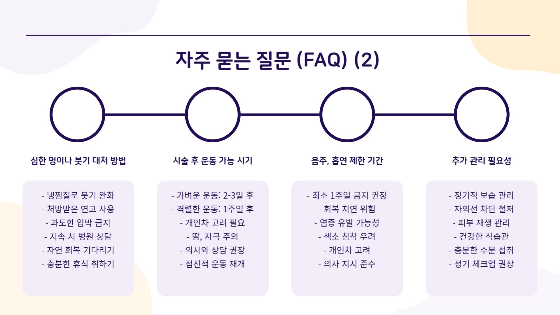 - Q3: 시술 후 멍이나 붓기가 심할 땐 어떻게 하나요?