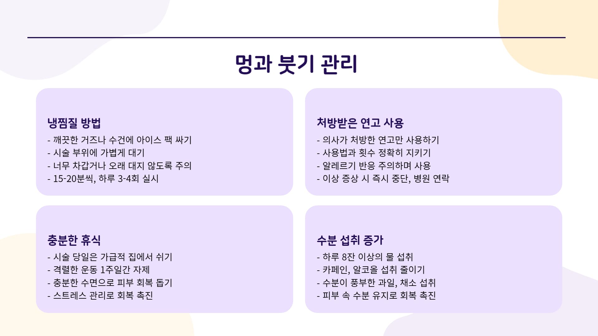 ▶ 멍/붓기 관리 (필요시)