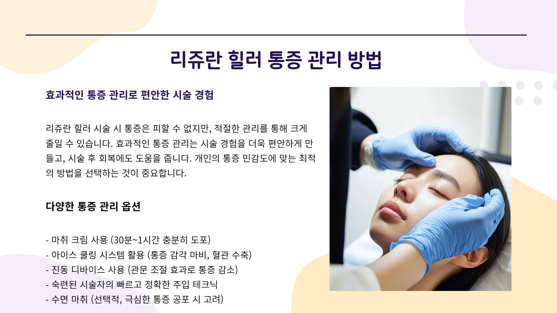 다행히 리쥬란 힐러의 통증을 효과적으로 관리하기 위한 다양한 방법들이 있습니다.