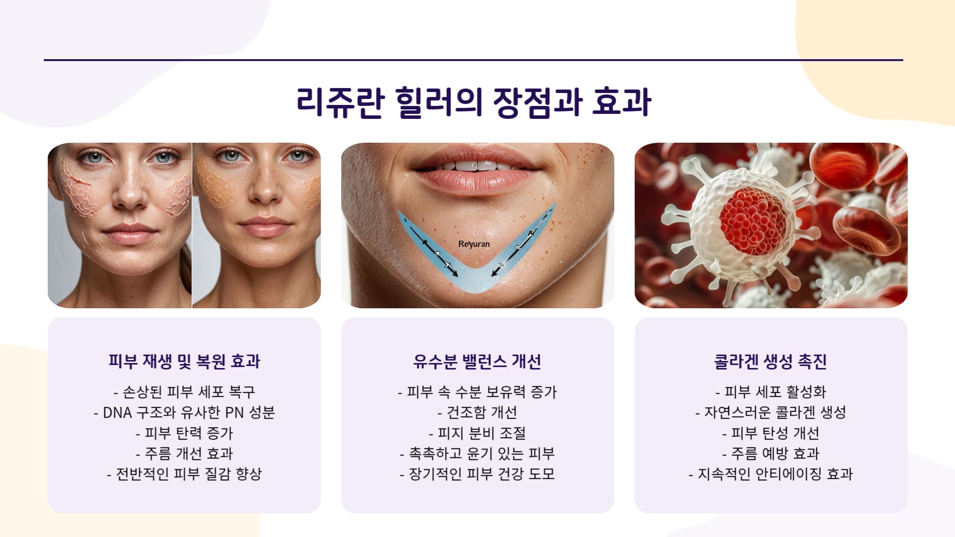리쥬란 힐러 효과 부작용은 연어 DNA에서 추출한 PN 성분을 기반으로 한 피부 속 환경 개선 및 재생 효과와 함께, 주사 시술 고유의 통증 및 시술 직후 엠보싱 현상이 특징입니다. 시술을 고민 중