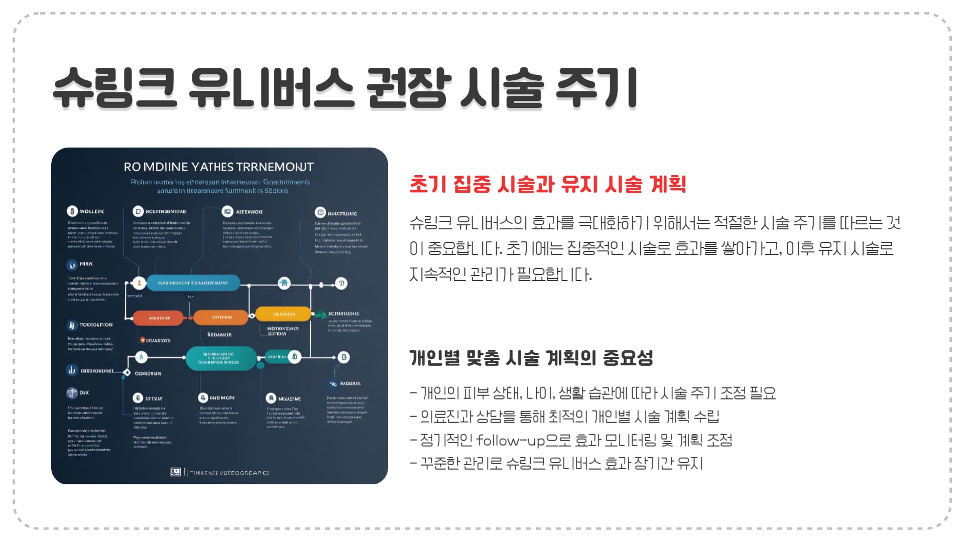 슈링크 유니버스 효과를 극대화하고 적절한 시술 주기를 계획하는 데 도움이 되는 팁을 알려드립니다.