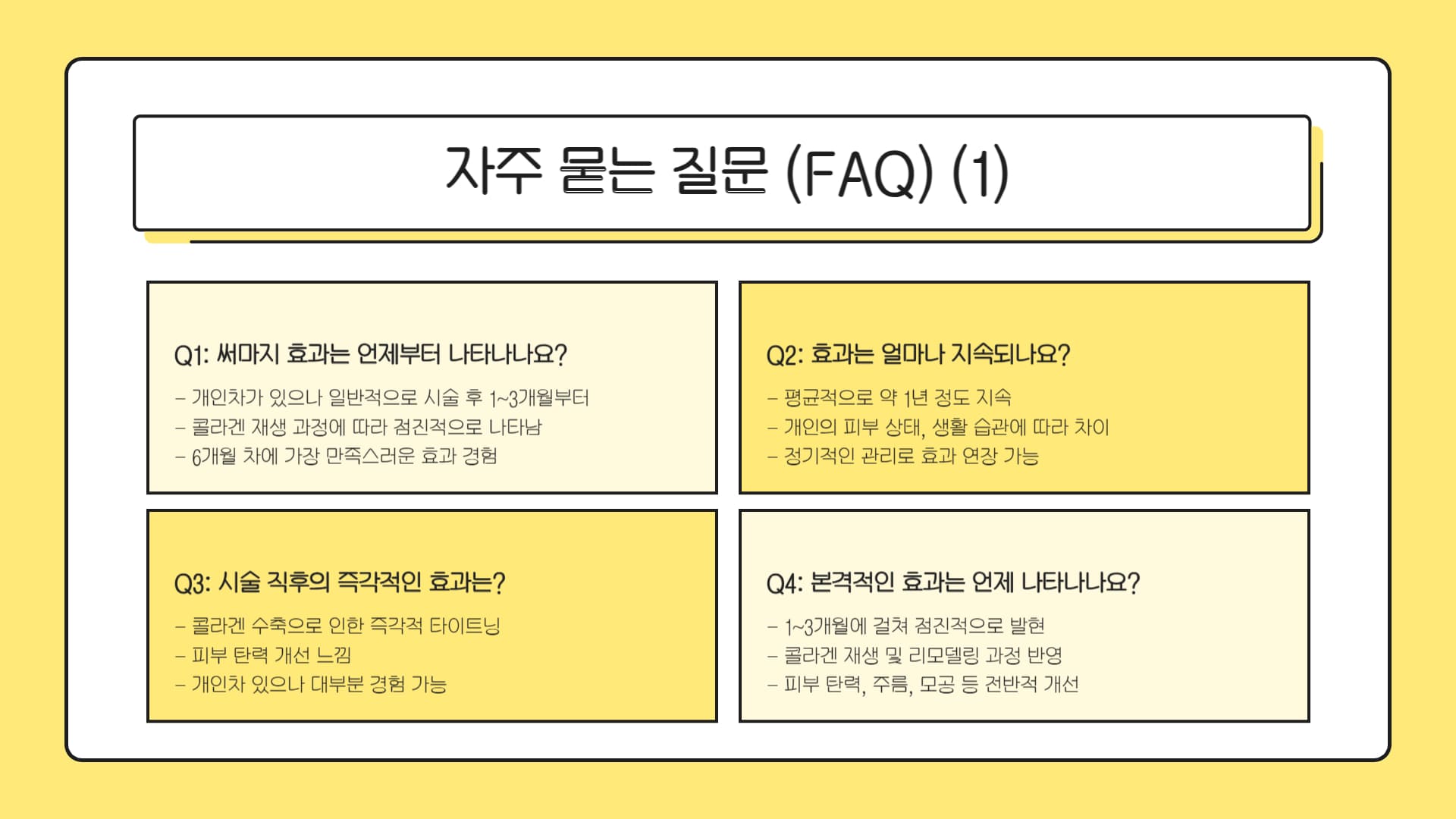 • Q1: 써마지 효과는 언제부터 나타나고 얼마나 지속되나요?