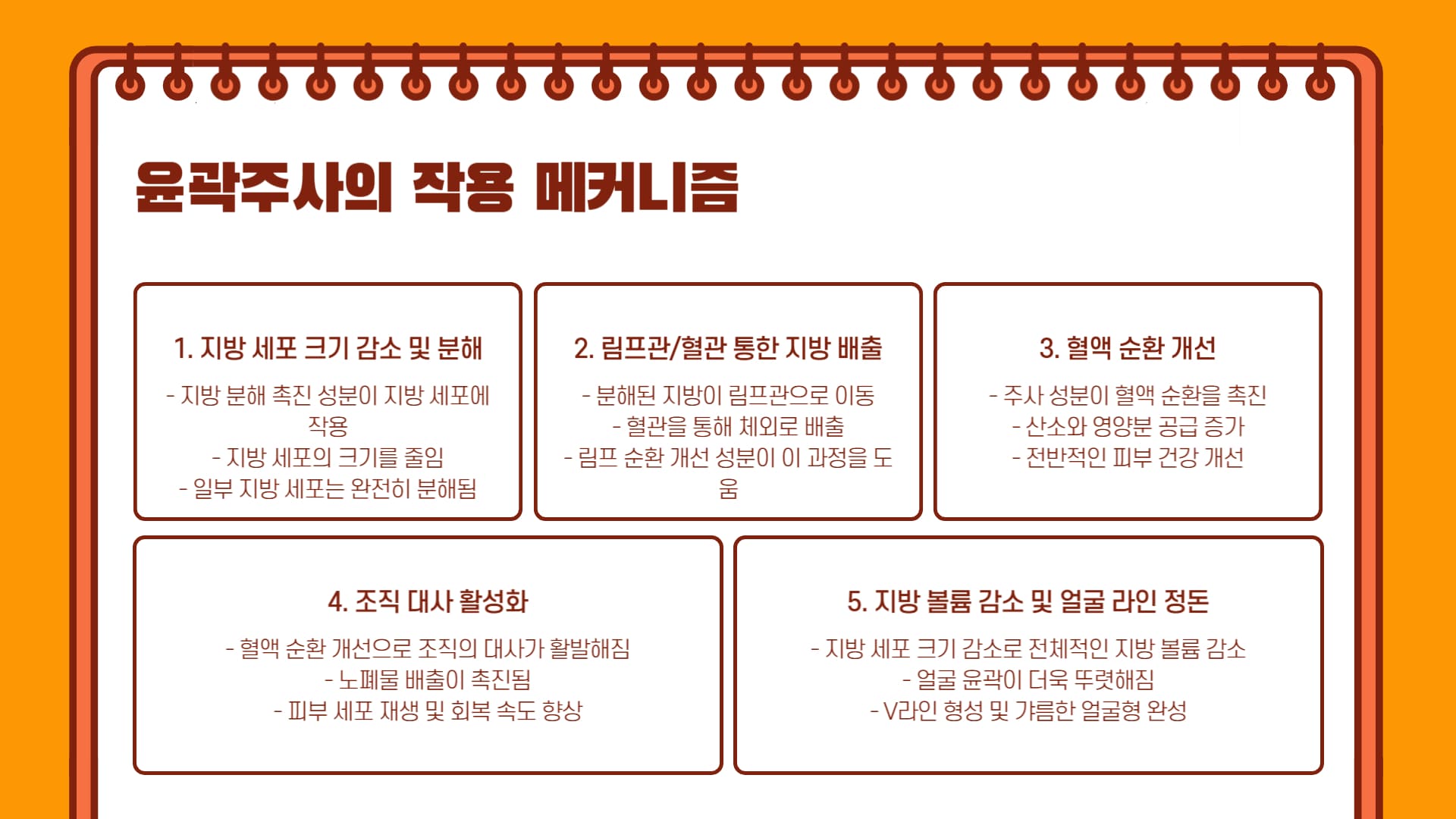 이러한 성분들이 피부에 주입되면 다음과 같은 과정을 통해 윤곽주사 효과가 나타납니다.