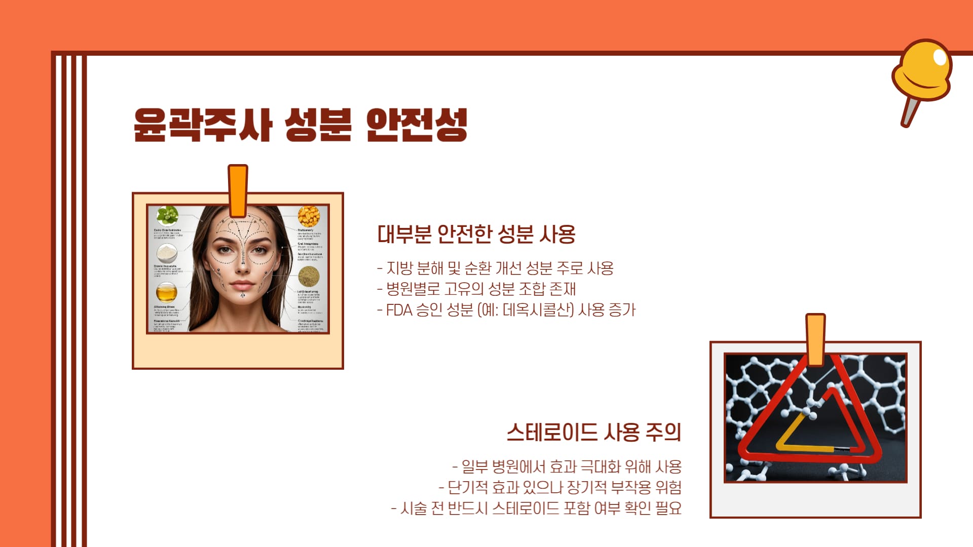 - Q3: 윤곽주사 성분은 안전한가요? 스테로이드가 걱정돼요.
